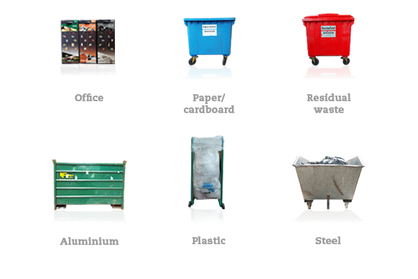 There are recognisable containers located in each of the 12 factory halls. In the offices all individual waste bins have been replaced by central containers for separated collection.