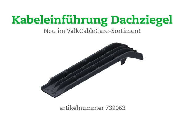 Neu in unserem ValkCableCare-Sortiment: Kunststoff-Kabeleinführung für Dachziegel (Artikelnummer 739063). Speziell für sicheres und professionelles Durchführen von Kabeln auf schrägen Dächern!