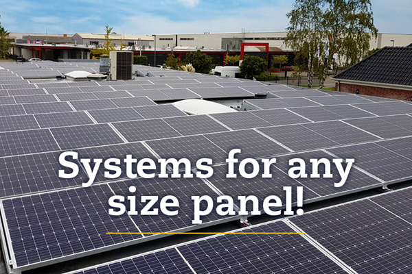 Solar panels are getting larger, fortunately they can be combined with all of our systems for pitched and flat roofs. We have developed our systems in a modular way. For example, a solar panel of 2111mm x 1046mm can easily be installed with all of our systems.