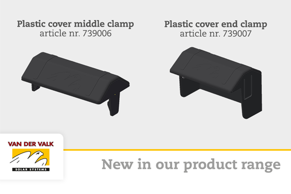 For PV-mounting system in which full-black panels are used, it is aesthetically nicer when the panel clamps are also in black colour and blend in with the rest of the visible parts of the system. For most of our systems this was already possible by applying the black anodized clamps, but now the new black ‘click-on’ covers can be added to the standard aluminium coloured panel clamps for the finishing touch. The covers can be easily clicked over the clamps, after the clamps have been installed and tightened.