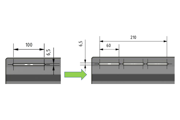 In order to increase the adjustability of the back plates, the design of the mounting slots in the back plates will be changed. Instead of one slot of 100 mm on both sides of the plate, there will now be three slots of 60 mm. With the increased adjustability, the back plates can always be mounted flush with the sides of the system, independent of the PV-panel size and configuration.