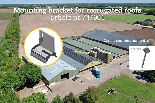 Ahora no solo es posible fijar el sistema ValkPitched en cubiertas con placas onduladas de la manera tradicional, sino también con soportes para placas onduladas. La ventaja del soporte para placas onduladas es que puede fijarse utilizando los puntos de fijación ya existentes de las placas onduladas.