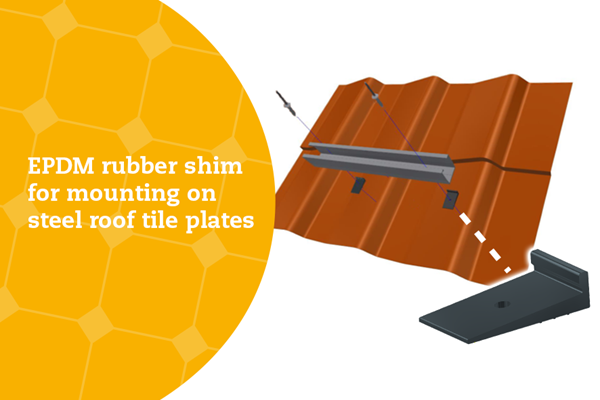 Las placas de relleno de goma EPDM, provistas de un orificio redondo de 6 mm de diámetro, se utilizan bajo los puntos de fijación de los perfiles ValkPitched trapezoidales instalados horizontalmente. El método estándar de fijar el perfil de aluminio a las placas de tejas es mediante remaches de aluminio (779223).