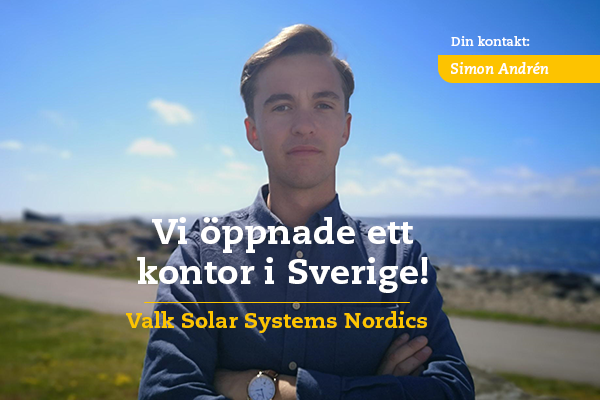 Vi stärker vår verksamhet i ”Norden” genom att etablera en filial i Sverige. Kontoret, som också betjänar Norge, Finland och Danmark, kommer gå under namnet Valk Solar Systems Nordics.